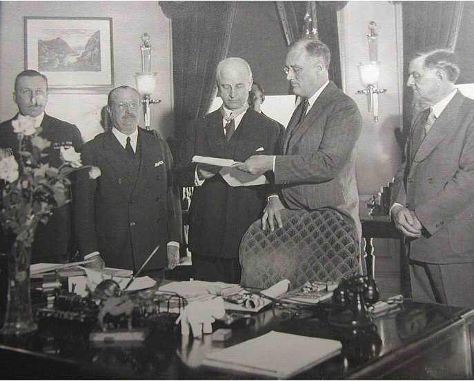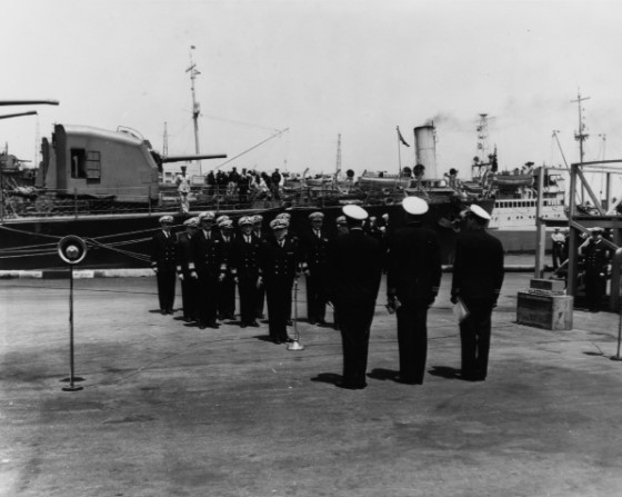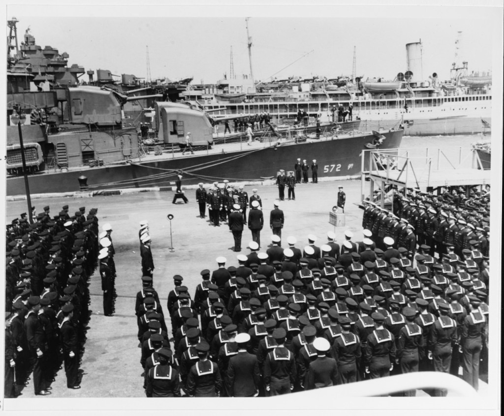 These photos show President Roosevelt awarding the Presidential Citation and it later being presented to the ship. Dad remembered standing with the sailors on the left side.