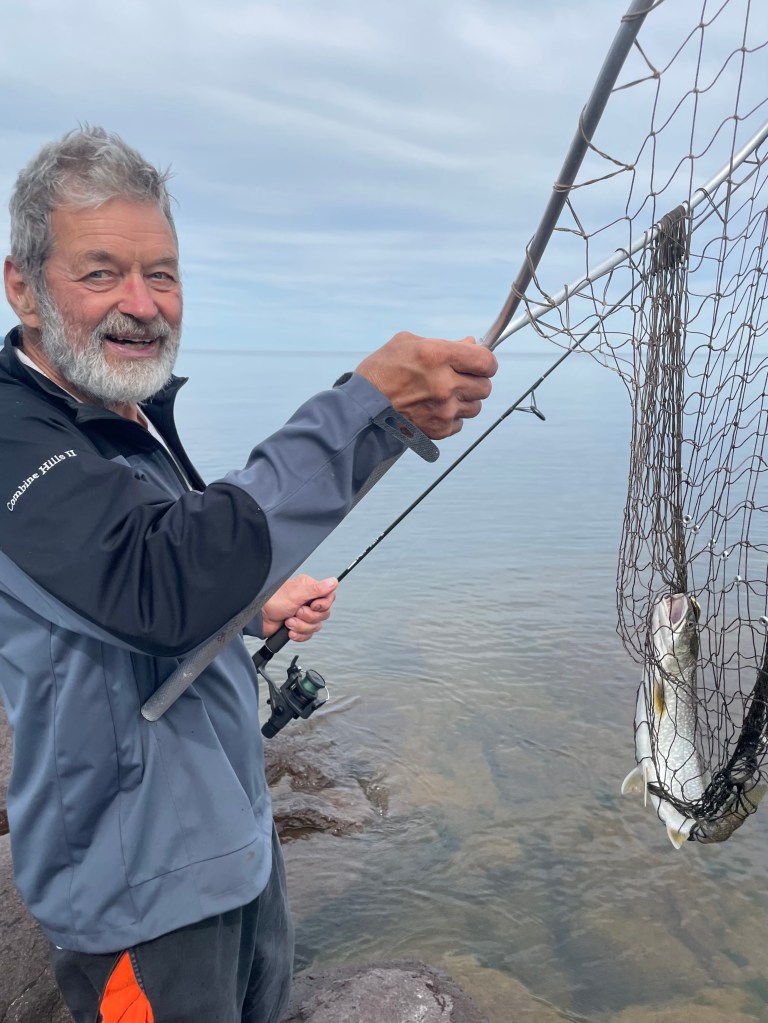 The man with the lake trout is my friend, Jan (pronounced yawn). Fishing from the shore is one of the highlights of the trip. This fish was a pound and a half and I’ve caught trout up to 5.5 pounds. Sadly, I didn’t catch anything this year.