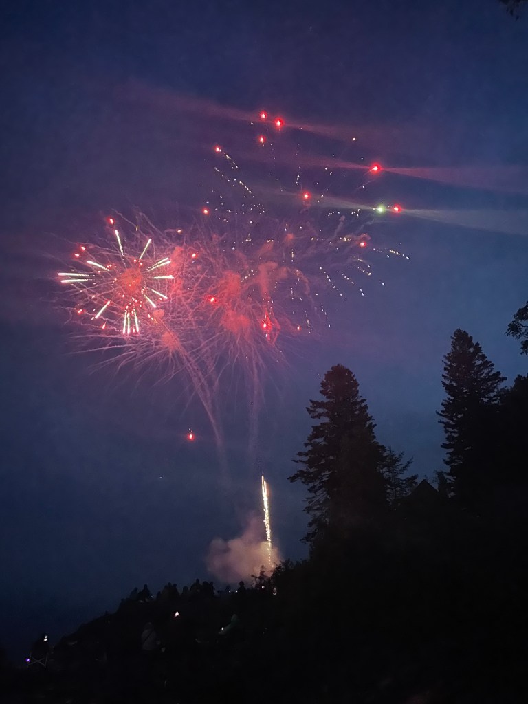 The tiny town of Tofte, Minnesota puts on the most amazing fireworks display. You sit on the rocky shoreline and watch the colors explode over the lake.
