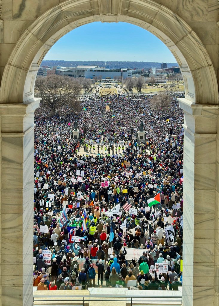 Here in the beautiful city of Saint Paul, 25,000 patriots marched to the Minnesota State Capit0l to let the world know that we are not going to sit on our hands as the country burns. There was singing, chanting, and the waving of signs. Most of all, there was hope and hope is where lasting change begins.
