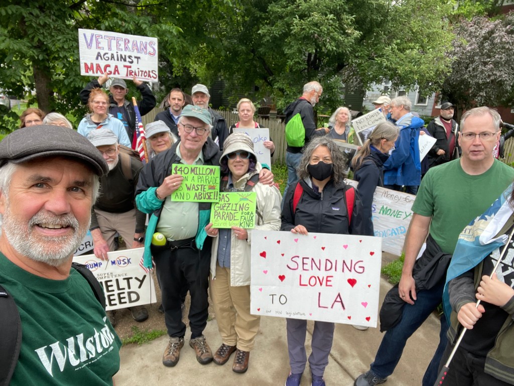 Mixed with the joy of marching, standing, chanting, and singing together, we were all grieving for Melissa Hortman, John Hoffman, and their families. I want to say “This is not who we are,” but sadly it is what we have become. It will take a lot of hard work to undo the hatred and division that has been sown throughout the country, but it’s a job that many of us are willing to undertake. Please make sure you are standing on the right side of history.