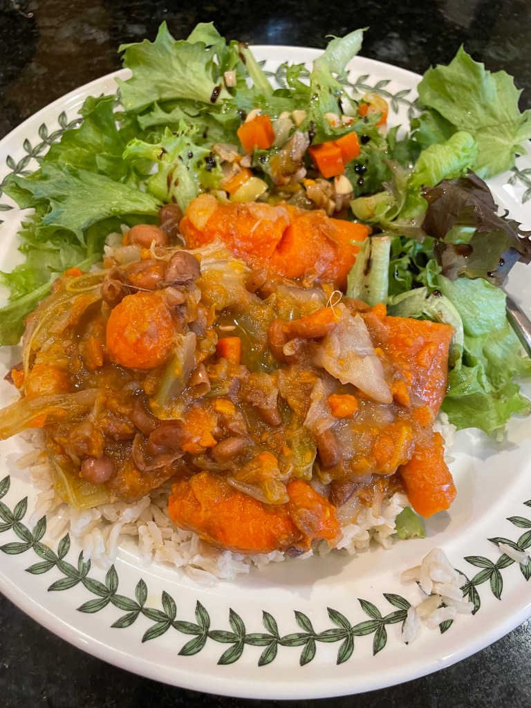 Red lentil dahl on fragrant basmati rice