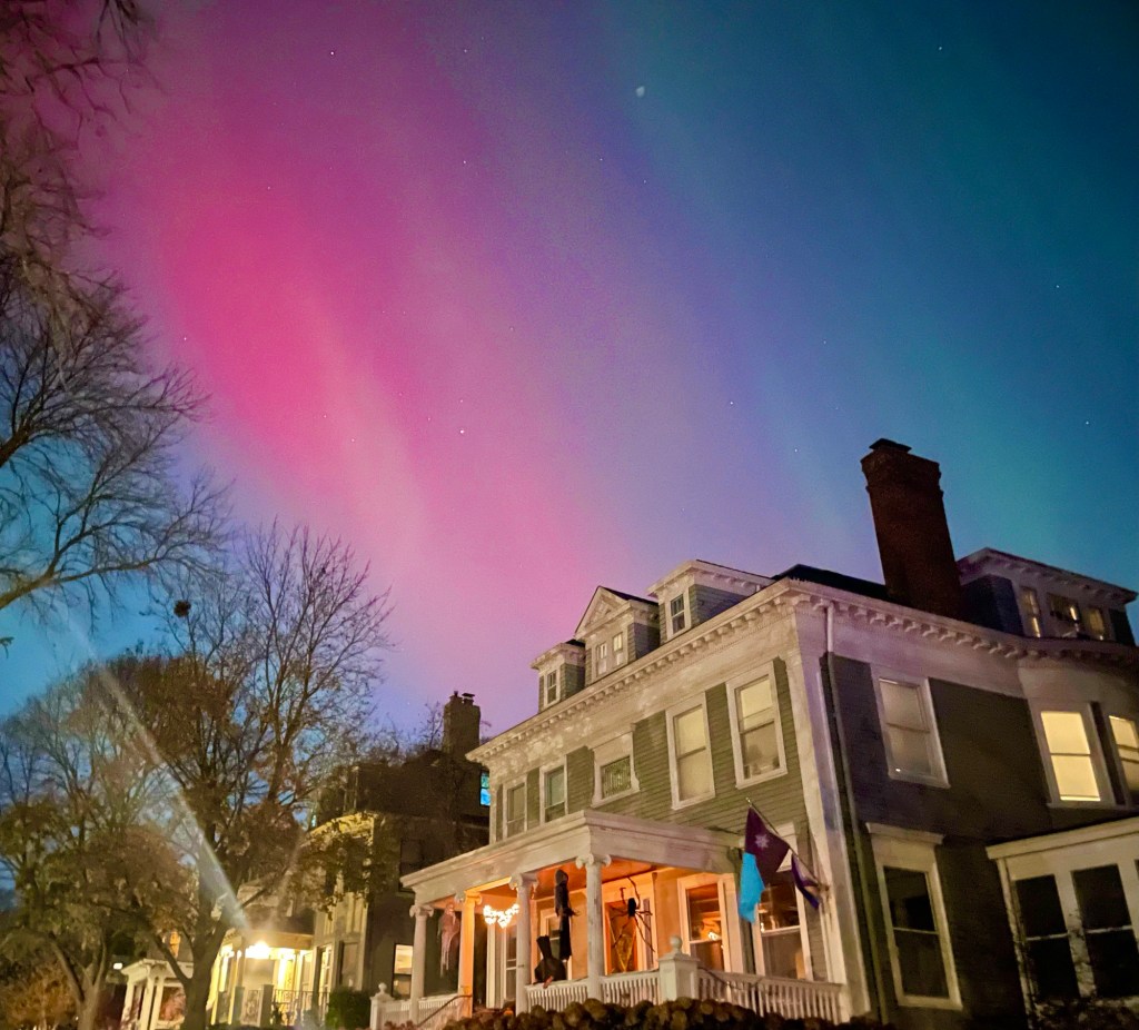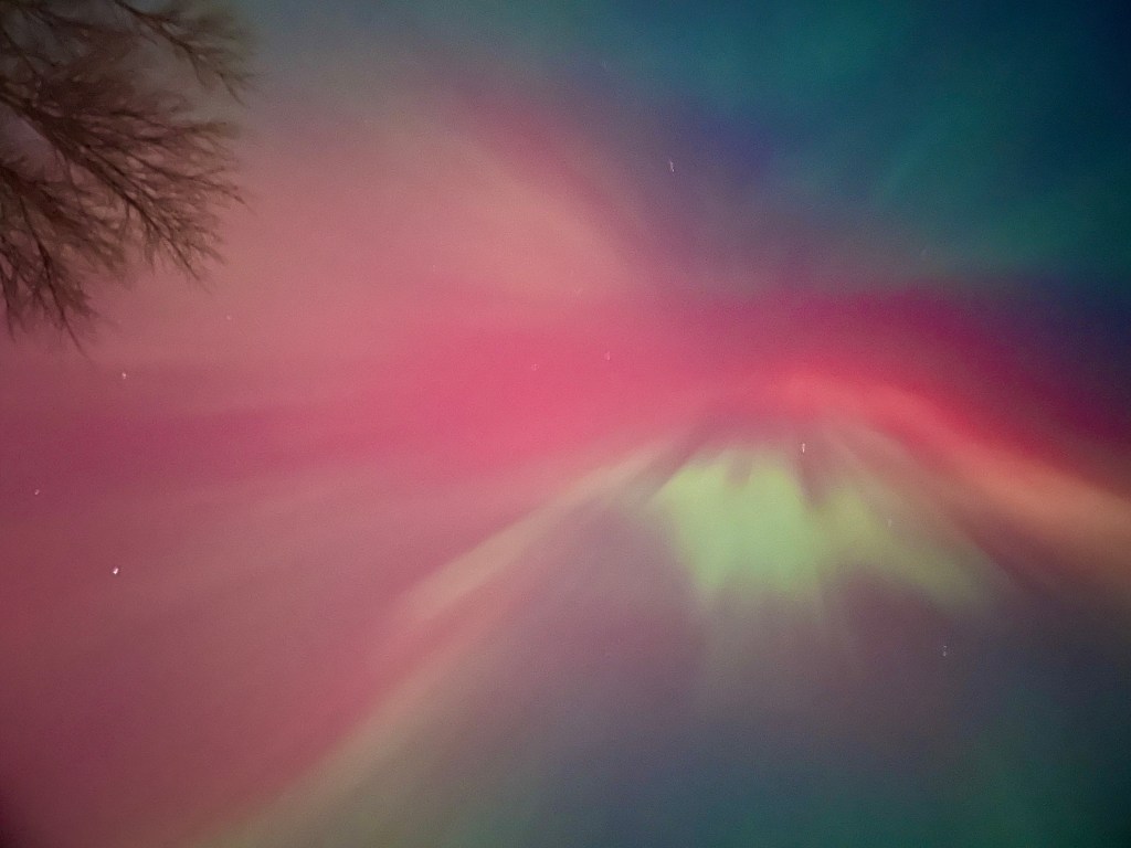 On Tuesday, November 11, 2025, I stepped outside my front door and witnessed the biggest Aurora Borealis that will probably occur in my lifetime. Not only was it and amazing spectacle, but after 40 year in Minnesota, this was my first time seeing Northern Lights. Believe me, I tried many times before that. While I had not given up, I was wondering if they were ever going to show up for me. Finally getting my turn despite all the light pollution of the Twin Cities made it even more memorable.