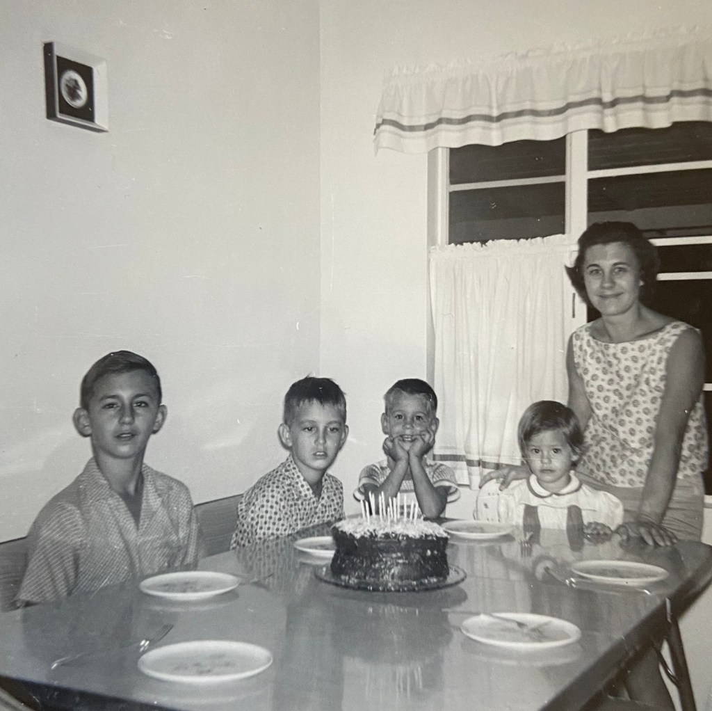 Richard (the birthday boy), Bob, me, Karen, and Mom circa 1965